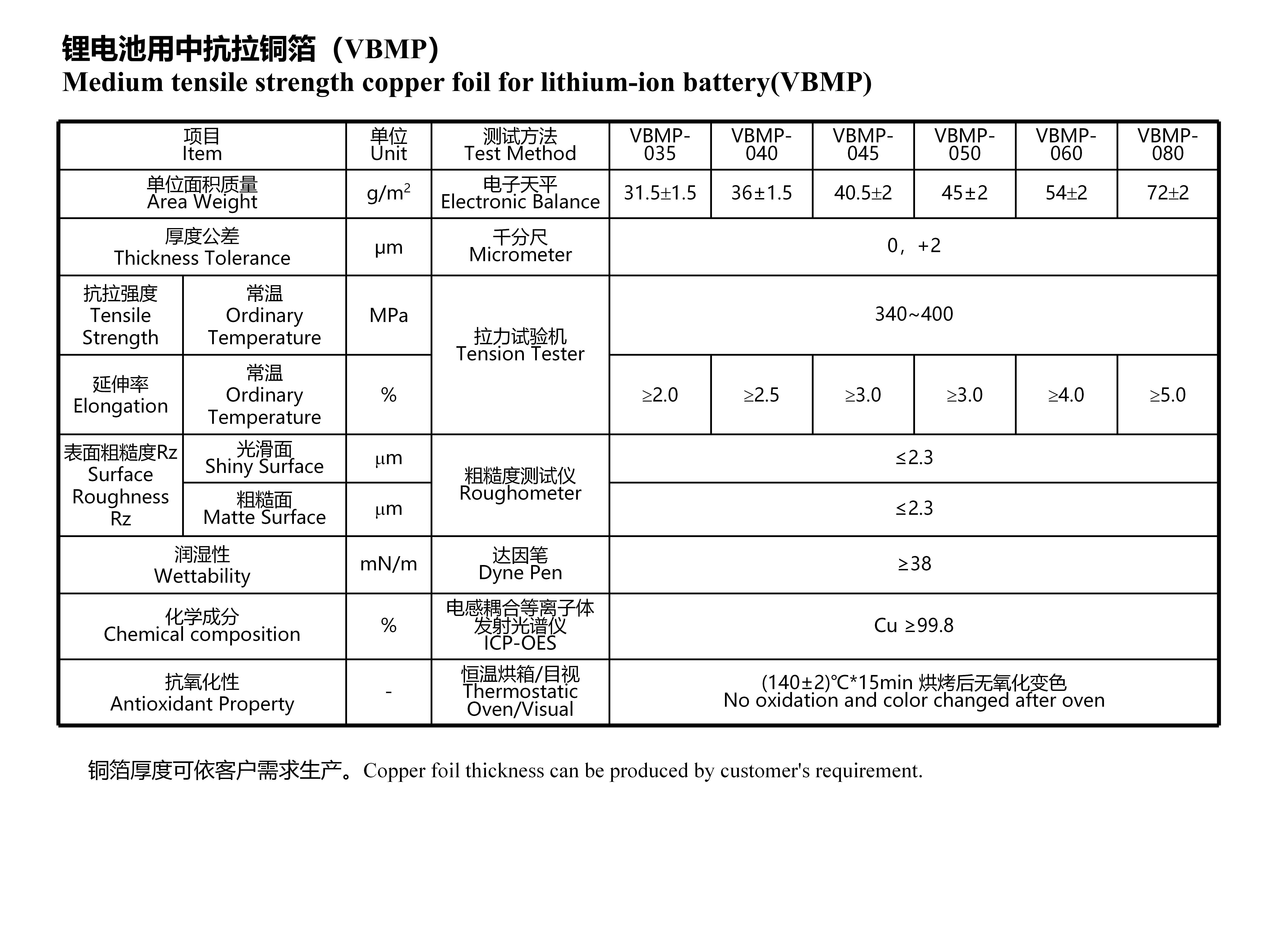 鋰電池用中抗拉銅箔(VBMP)